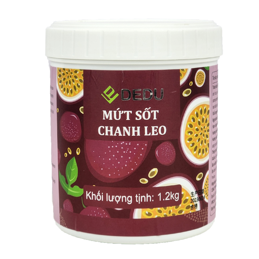 Mứt Sốt Chanh Leo DEDU: Mứt có màu vàng và vị chua ngọt của chanh leo, tạo cảm giác thanh khiết và giải nhiệt. Mứt sốt chanh leo phù hợp với các loại đồ uống như trà chanh leo, sinh tố chanh leo, sữa chua chanh leo,…