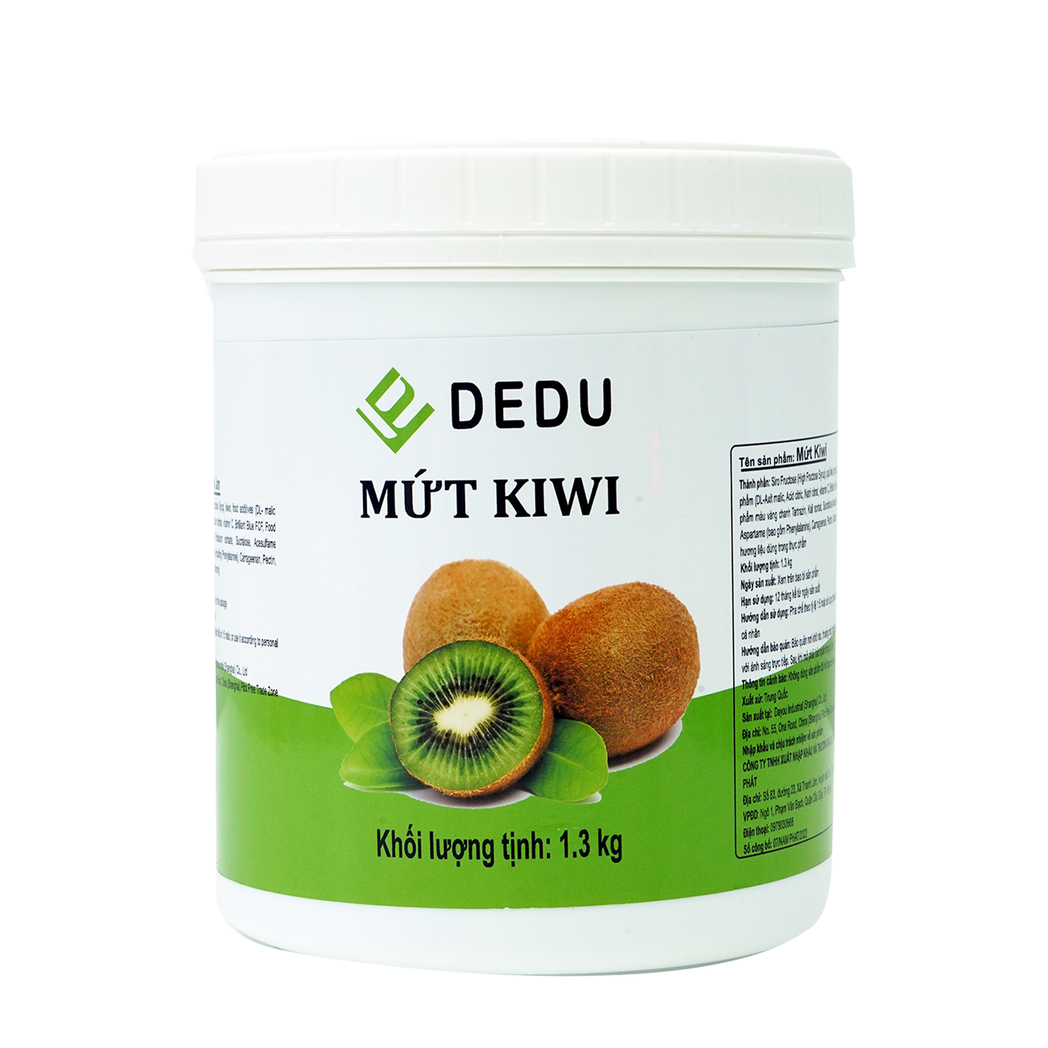 Mứt Kiwi DEDU: Mứt có màu xanh và vị chua ngọt của kiwi, tăng thêm hương vị và màu sắc cho đồ uống. Mứt kiwi hợp với các loại đồ uống như trà kiwi, sinh tố kiwi, sữa chua kiwi,…