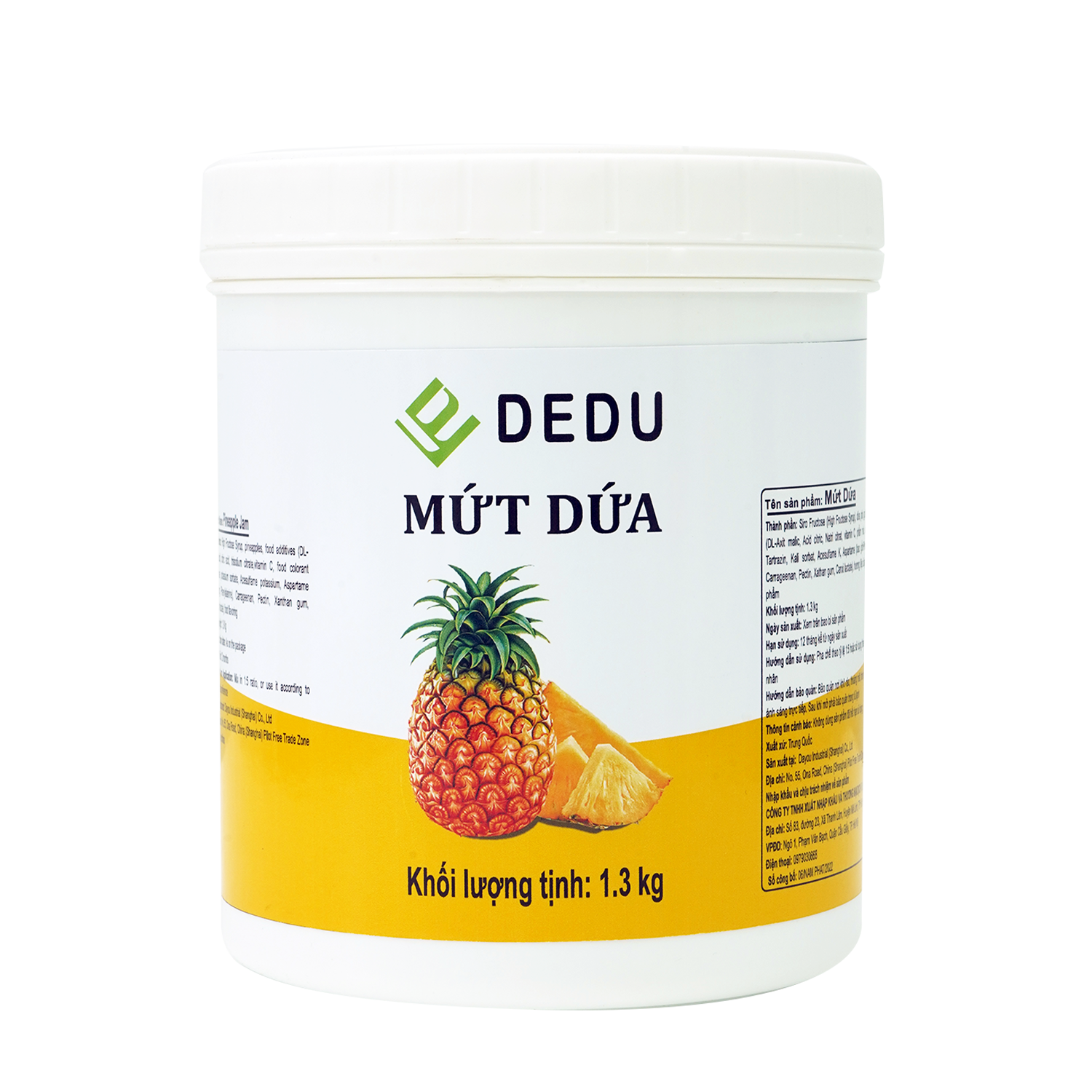 Mứt Dứa DEDU: Mứt có màu vàng và vị thơm ngon của dứa, mang lại cảm giác tươi mát và quyến rũ. Mứt dứa phù hợp với các loại đồ uống như trà dứa, soda dứa, sữa chua dứa,…